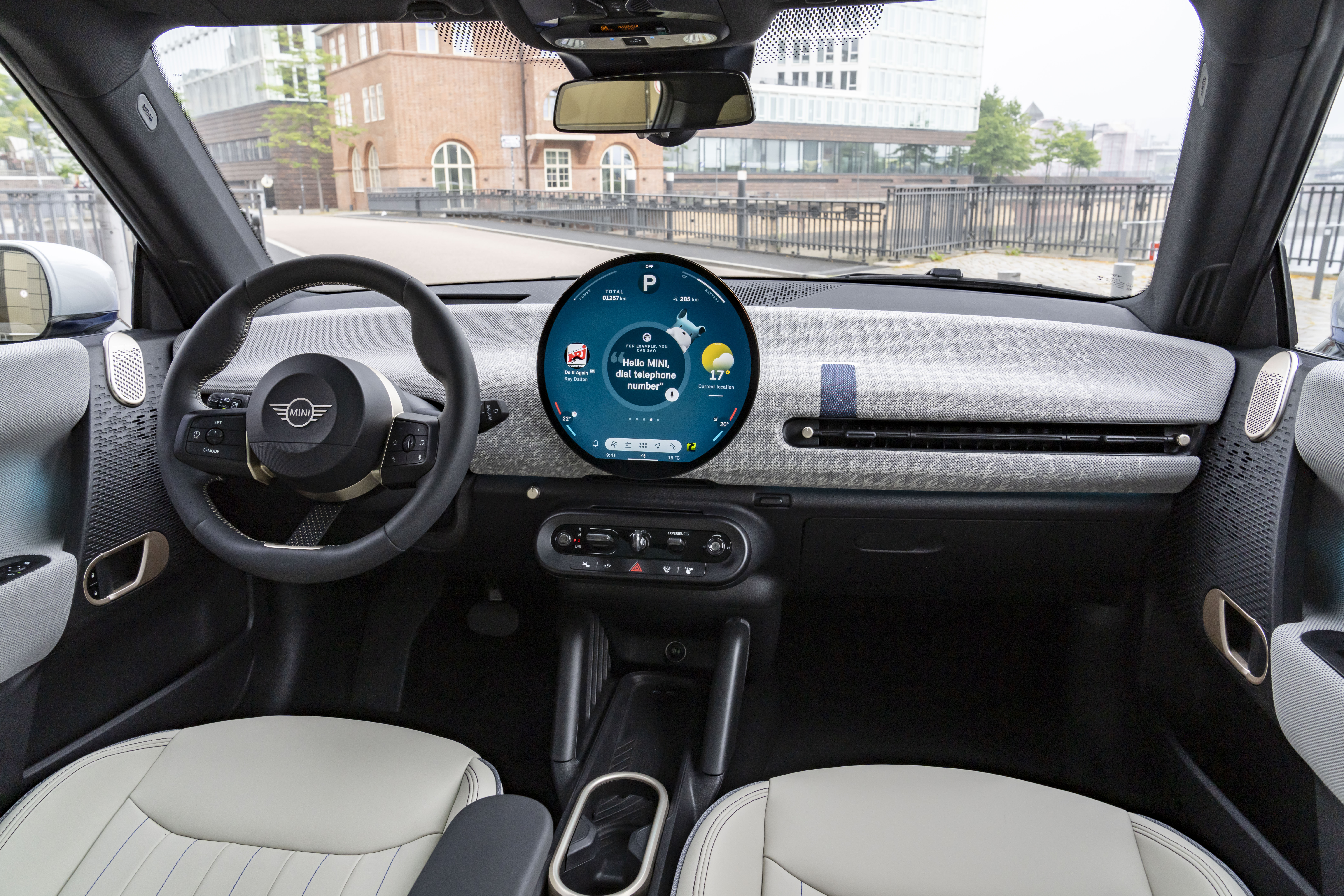 The interior is typically playful and emotional. Despite a more minimalist approach and many digital elements, the interior feels warm and homely. The round OLED display and the characteristic toggle switch strip are redesigned, just like the steering wheel.
